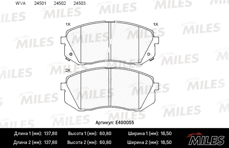 E400055 MILES Колодки тормозные передние (без датчика) (Смесь Low-Metallic) HYUNDAI ix35 10-/K