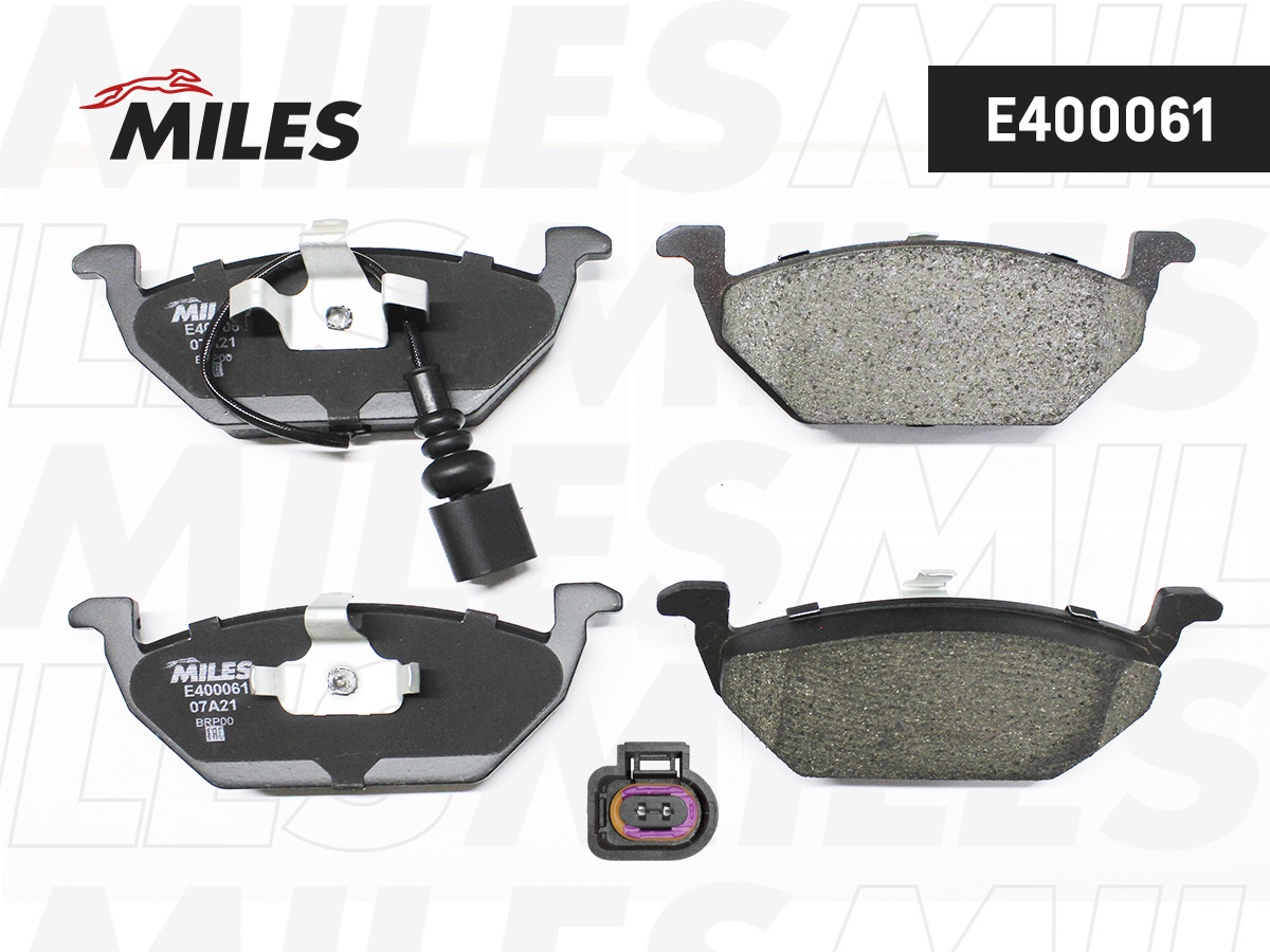 E400061 MILES Колодки тормозные передние (с датчиком) (Смесь Low-Metallic) AUDI A3 03/VW G4/G5