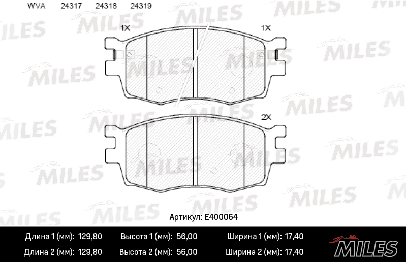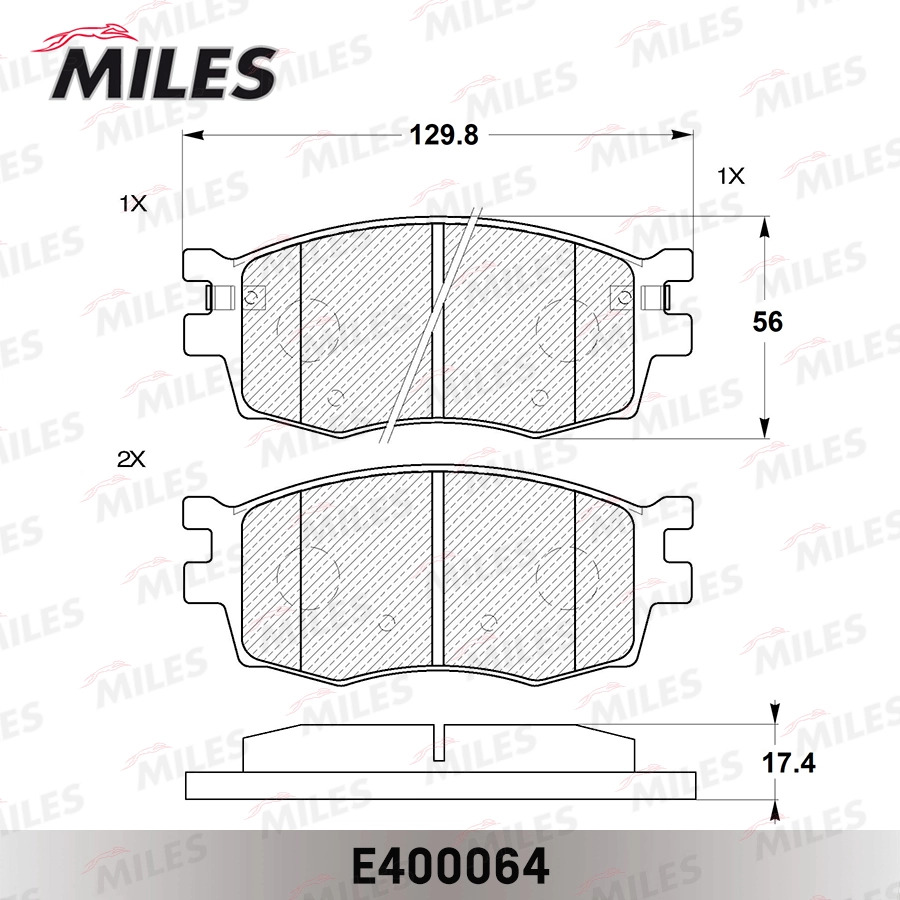 E400064 MILES Колодки тормозные передние (без датчика) (Смесь Low-Metallic) (HYUNDAI ACCENT II