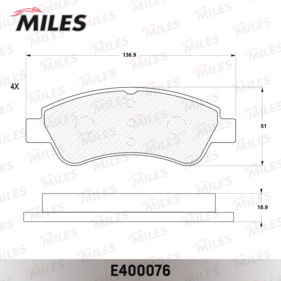 E400076 MILES Колодки тормозные передние (без датчика + болты) (Смесь Low-Metallic) CITROEN C4