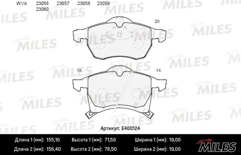 E400124 MILES Колодки тормозные передние (без датчика) (Смесь Low-Metallic) OPEL ASTRA G 1.8-2