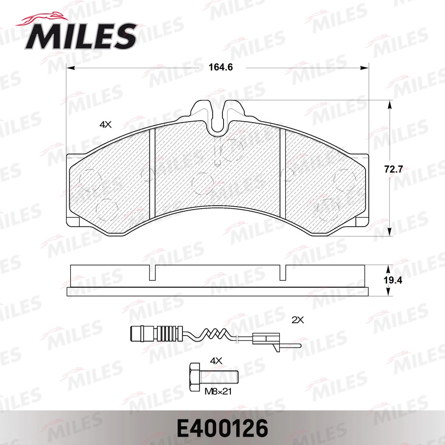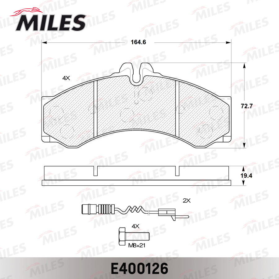 E400126 MILES Колодки тормозные передние (без датчика + болты) (Смесь Low-Metallic) (MB Sprint