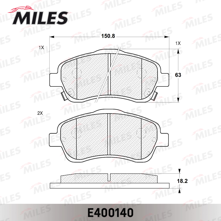 E400140 MILES Колодки тормозные передние (без датчика) (Смесь Low-Metallic) TOYOTA AVENSIS 03/