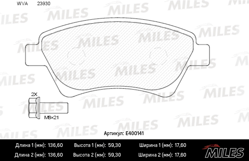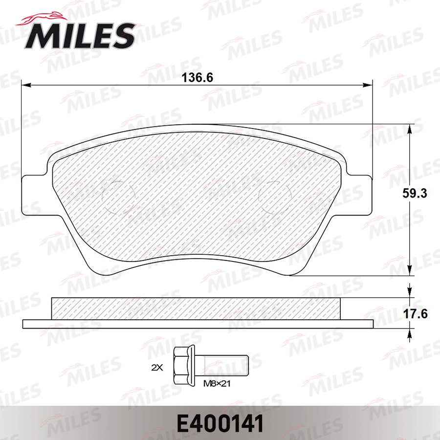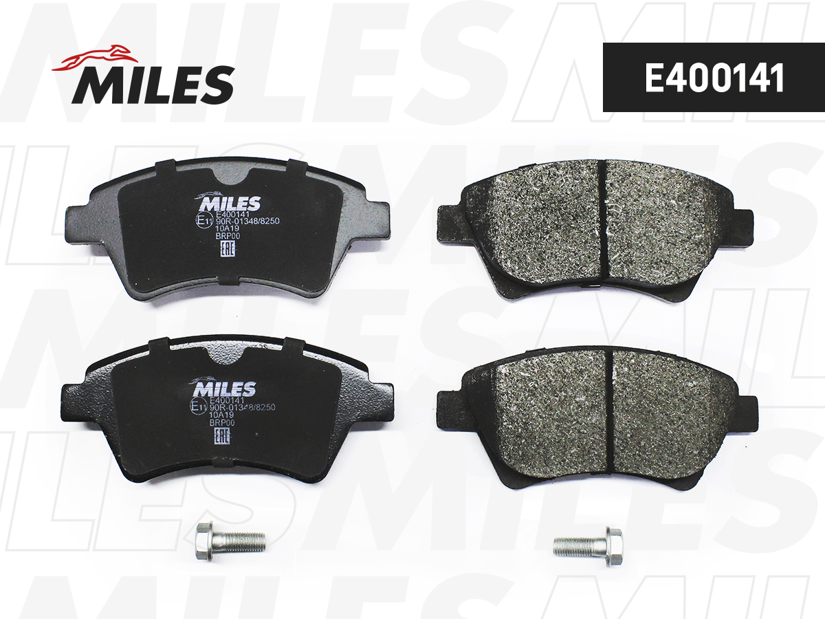 E400141 MILES Колодки тормозные передние (без датчика + болты) (Смесь Low-Metallic) RENAULT KA