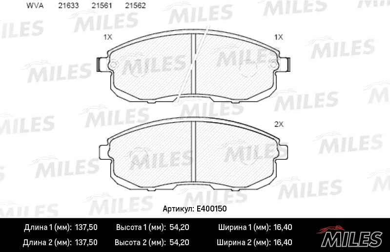 E400150 MILES Колодки тормозные передние (без датчика) (Смесь Low-Metallic) (NISSAN JUKE F15,