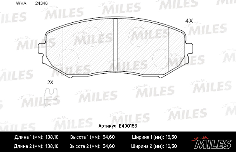 E400153 MILES Колодки тормозные передние (без датчика) (Смесь Low-Metallic) SUZUKI GRAND VITAR