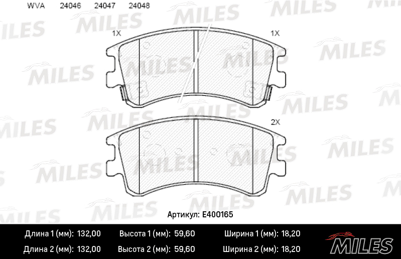 E400165 MILES Колодки тормозные передние (без датчика) с индикатором износа (Смесь Low-Metalli