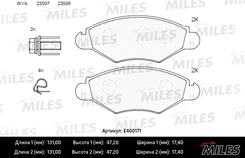 E400171 MILES Колодки тормозные передние (без датчика) (без ABS) (Смесь Low-Metallic) PEUGEOT