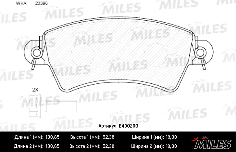 E400200 MILES Колодки тормозные передние (без датчика) (Смесь Low-Metallic) (Peugeot 206/306 1