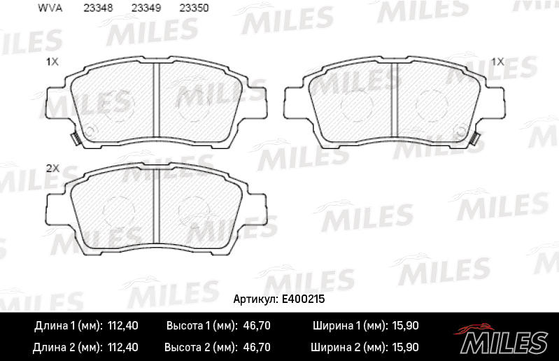 E400215 MILES Колодки тормозные передние (без датчика) (Смесь Low-Metallic) (TOYOTA YARIS / VI