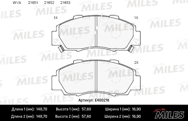 E400218 MILES Колодки тормозные передние (без датчика + болты) (Смесь Low-Metallic) (HONDA ACC