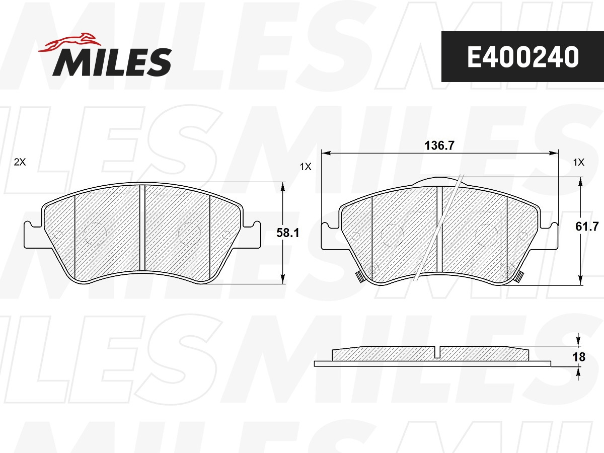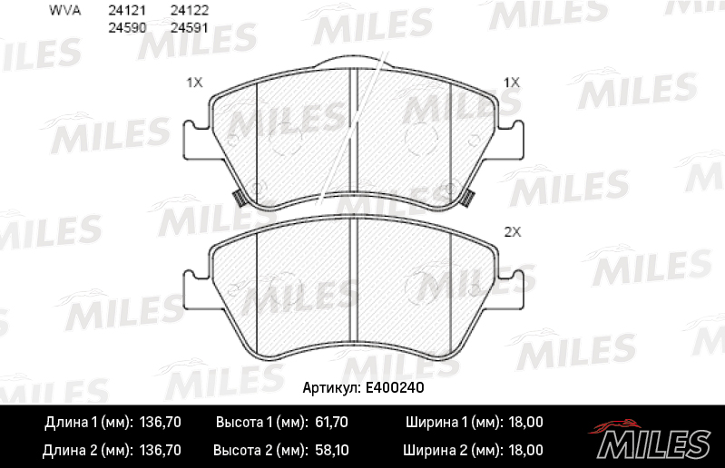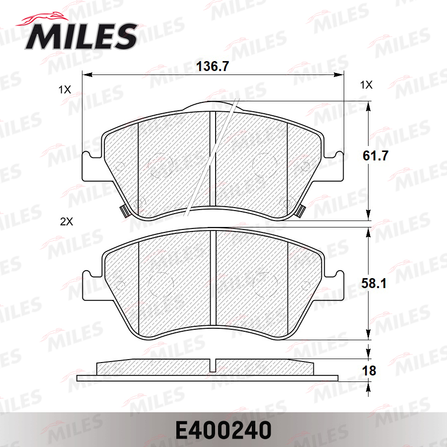 E400240 MILES Колодки тормозные передние (без датчика) (Смесь Low-Metallic)TOYOTA AURIS 1.33-2