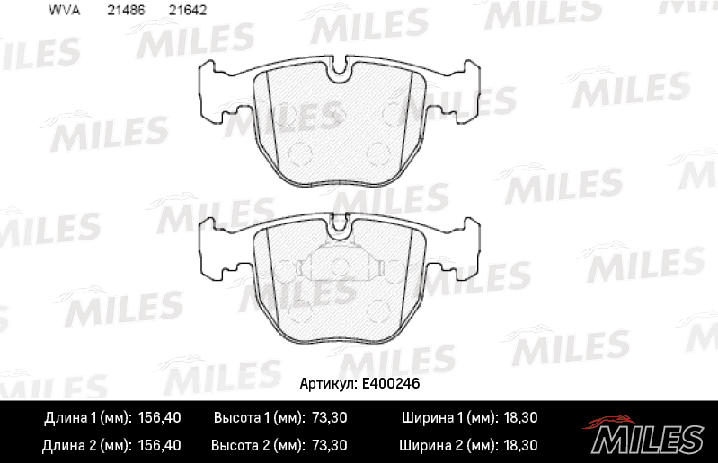 E400246 MILES Колодки тормозные передние (без датчика) (Смесь Low-Metallic) (BMW Е38/E39/X5 3.