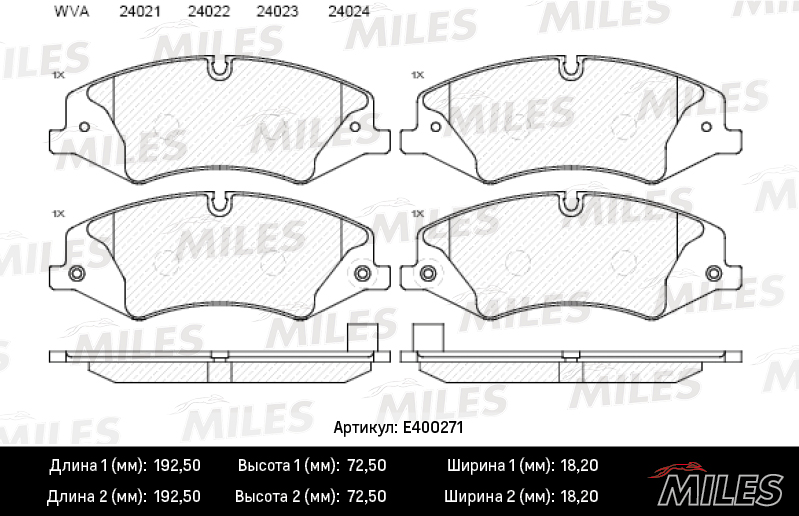 E400271 MILES Колодки тормозные передние (без датчика + болты) (Смесь Low-Metallic) (LR DISCOV