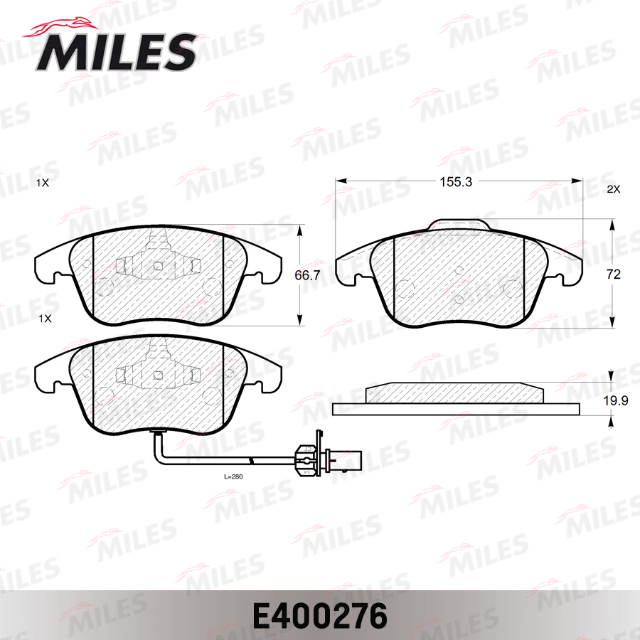 E400276 MILES Колодки тормозные передние (с датчиком) (Смесь Low-Metallic) AUDI A4/A4 ALLROAD/