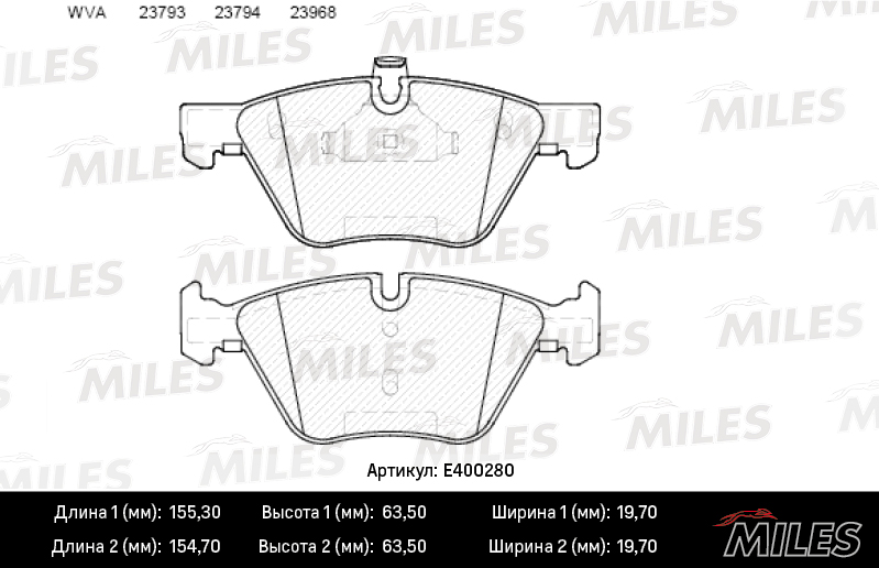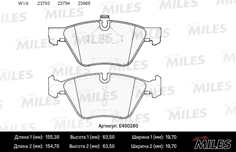 E400280 MILES Колодки тормозные передние (без датчика) (Смесь Low-Metallic) (BMW E90/E60 1.8-3