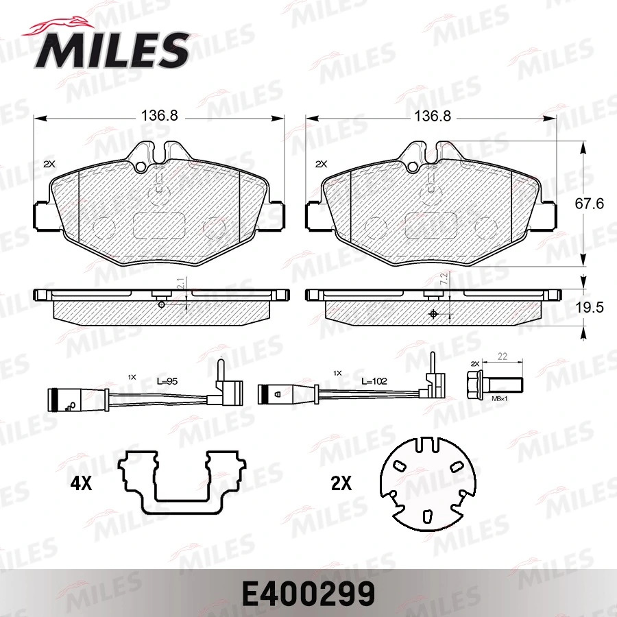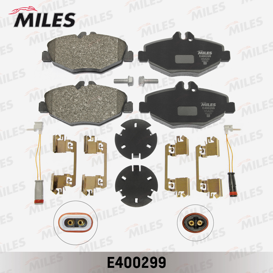 E400299 MILES Колодки тормозные передние (с датчиком + болты) (Смесь Low-Metallic) (MB W211 02