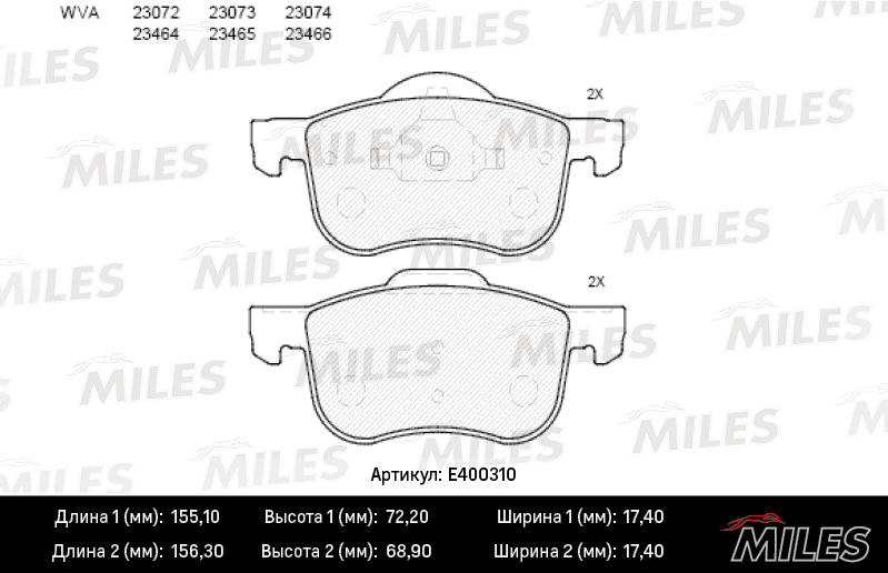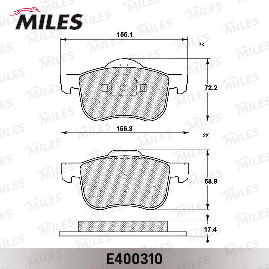 E400310 MILES Колодки тормозные передние (без датчика) (Смесь Low-Metallic) (VOLVO S60/S70/S80