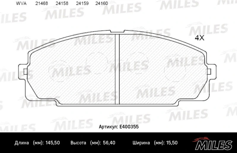 E400355 MILES Колодки тормозные передние (без датчика) (Смесь Low-Metallic) TOYOTA HIACE 2.0-2