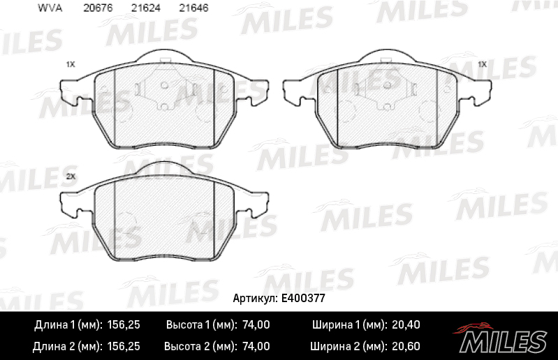 E400377 MILES Колодки тормозные передние (без датчика) (Смесь Low-Metallic) AUDI A4 9501/VOLKS