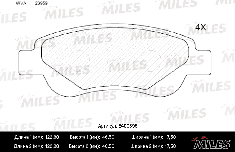 E400395 MILES Колодки тормозные передние (без датчика) (Смесь Low-Metallic) CITROEN C1/PEUGEOT