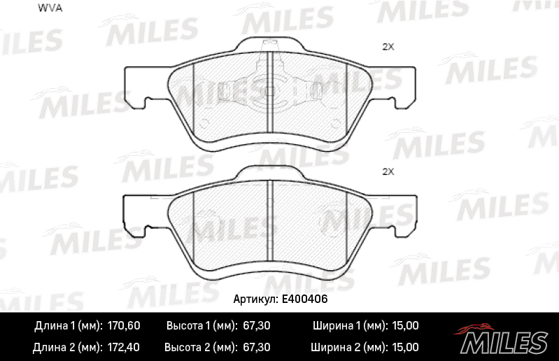 E400406 MILES Колодки тормозные передние (без датчика) (Смесь Low-Metallic) FORD MAVERICK/MAZD