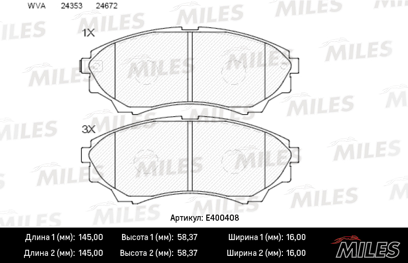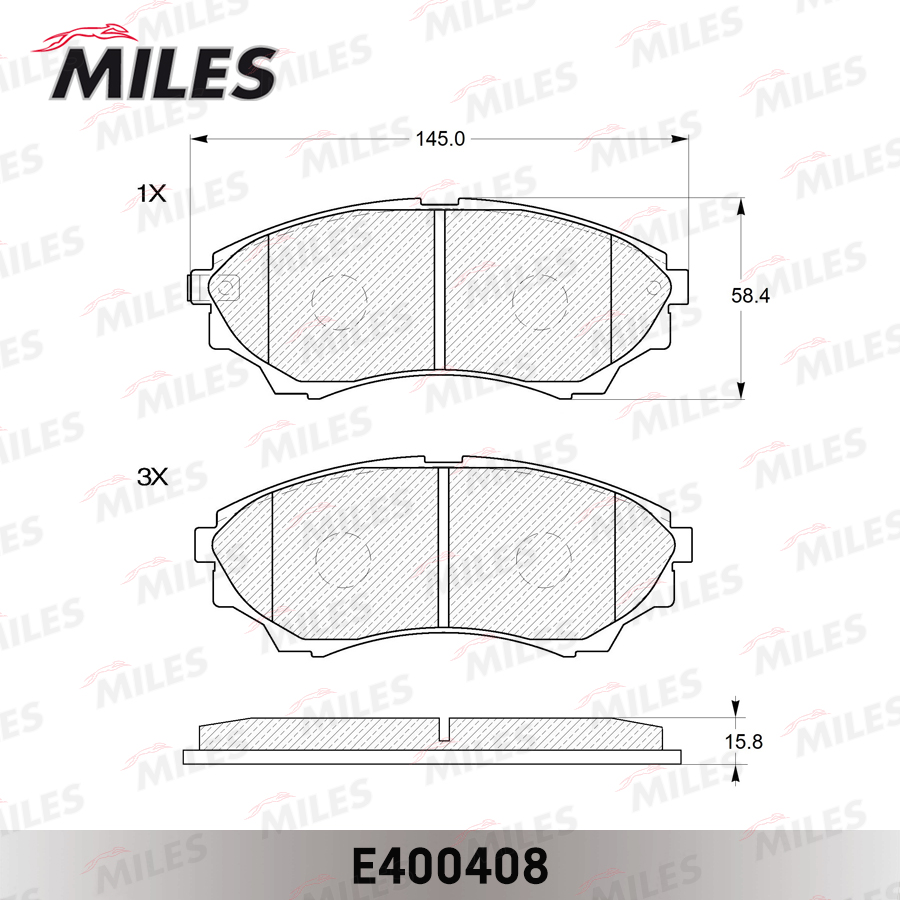 E400408 MILES Колодки тормозные передние (без датчика) (Смесь Low-Metallic) FORD RANGER 99-/MA
