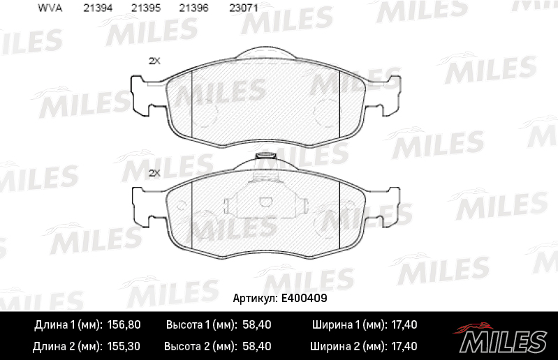 E400409 MILES Колодки тормозные передние (без датчика) (Смесь Low-Metallic) FORD SCORPIO 2.5T/