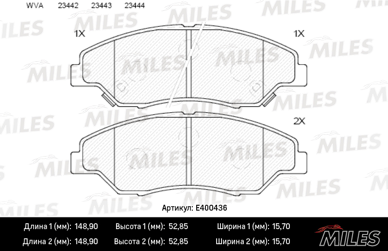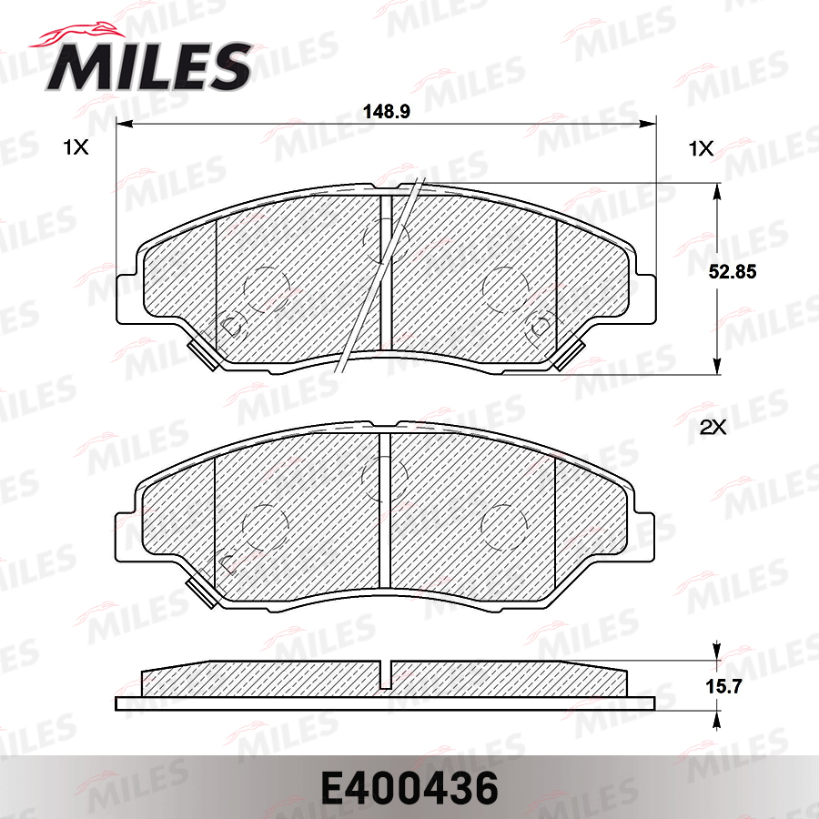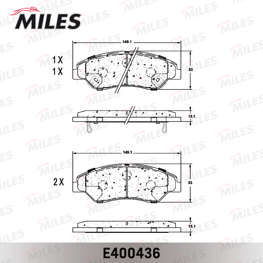 E400436 MILES Колодки тормозные передние (без датчика) (Смесь Low-Metallic) KIA SPORTAGE 2.0 9
