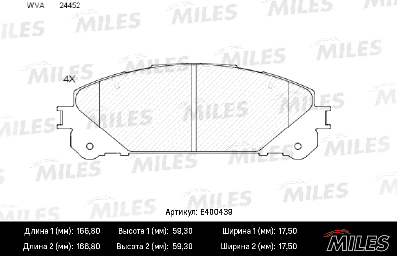 E400439 MILES Колодки тормозные передние (без датчика) (Смесь Low-Metallic) LEXUS RX 09-/TOYOT