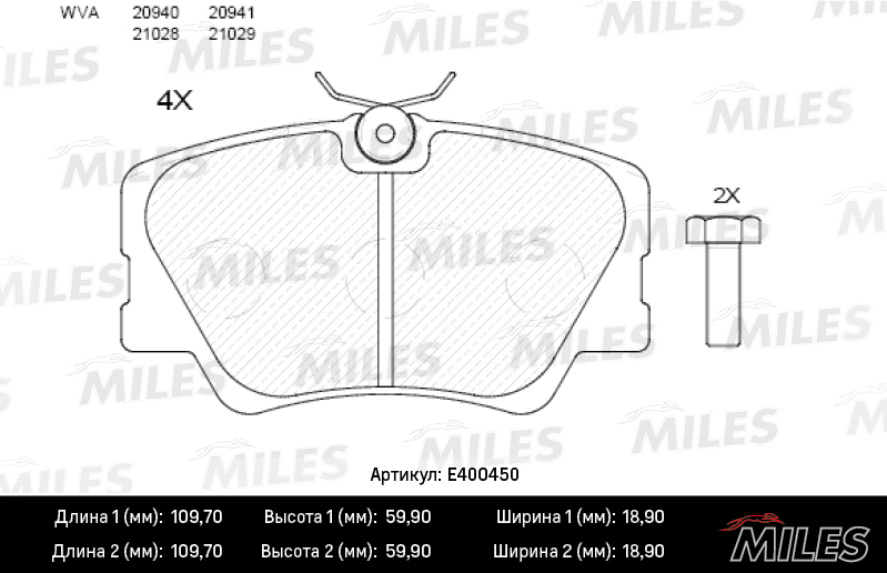 E400450 MILES Колодки тормозные передние (без датчика) (Смесь Low-Metallic) MERCEDES BENZ W201