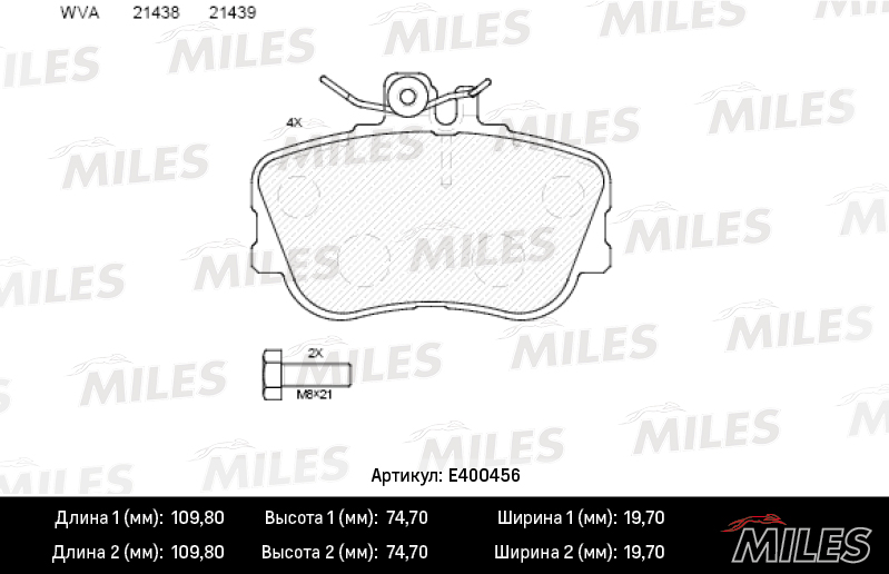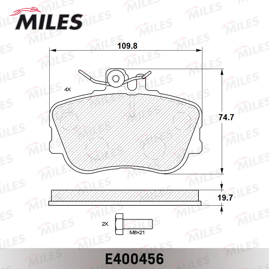 E400456 MILES Колодки тормозные передние (без датчика + болты) (Смесь Low-Metallic) MERCEDES W