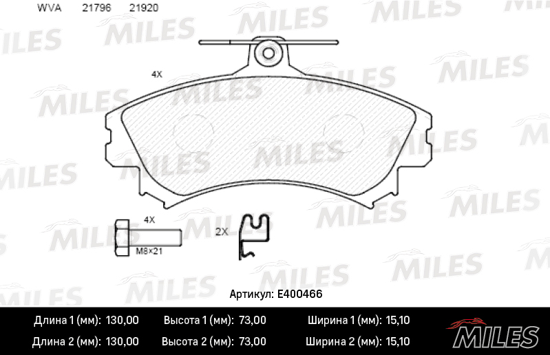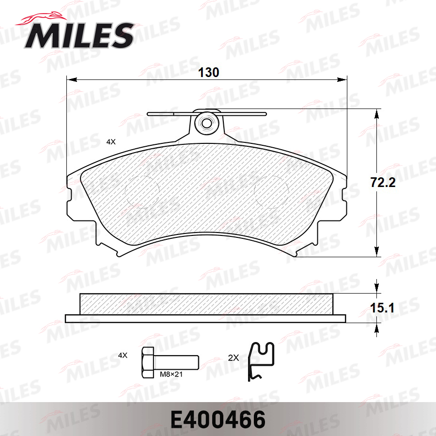 E400466 MILES Колодки тормозные передние (без датчика) (Смесь Low-Metallic) MITSUBISHI CARISMA
