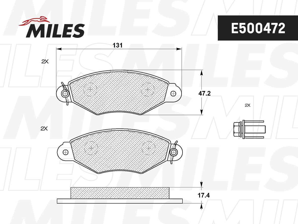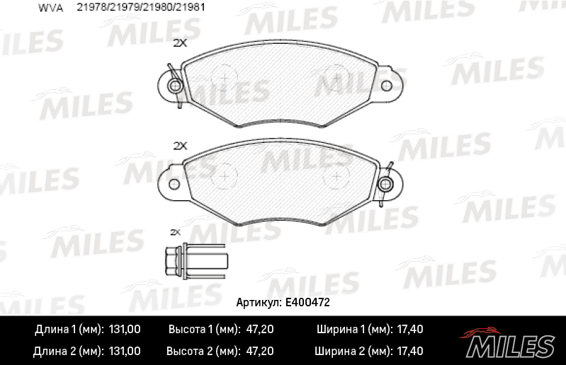 E400472 MILES Колодки тормозные передние (без датчика) (Смесь Low-Metallic) NISSAN KUBISTAR 03