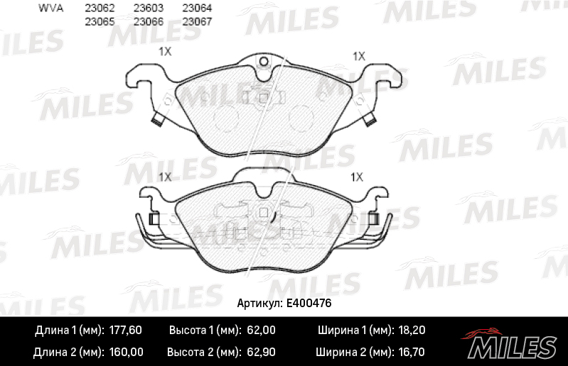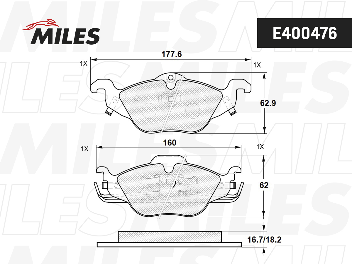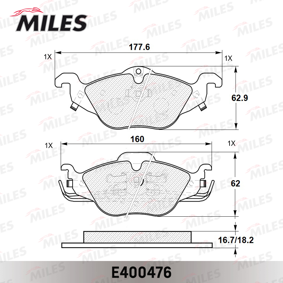 E400476 MILES Колодки тормозные передние (без датчика) (Смесь Low-Metallic) OPEL ASTRA G 1.2/1