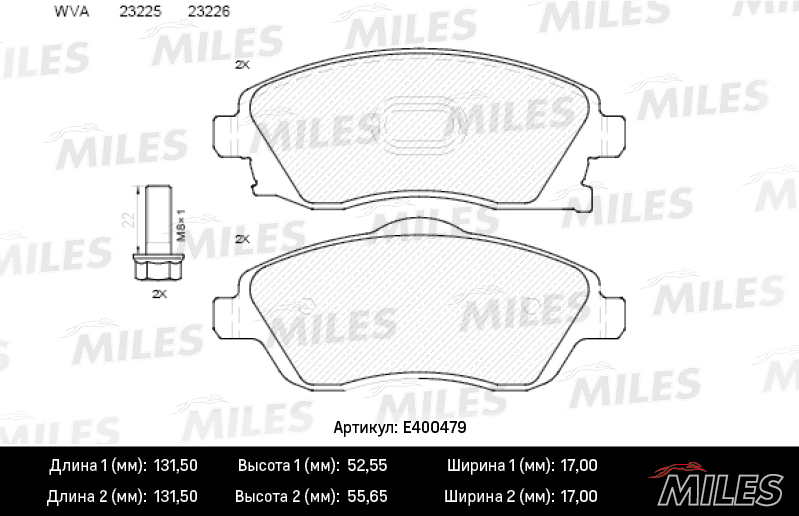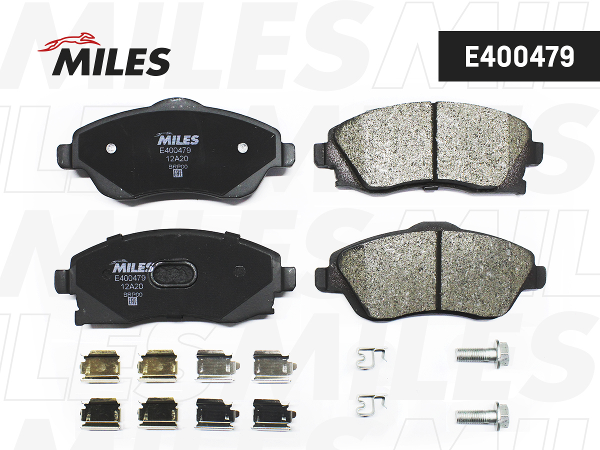 E400479 MILES Колодки тормозные передние (без датчика + болты) (Смесь Low-Metallic) OPEL CORSA