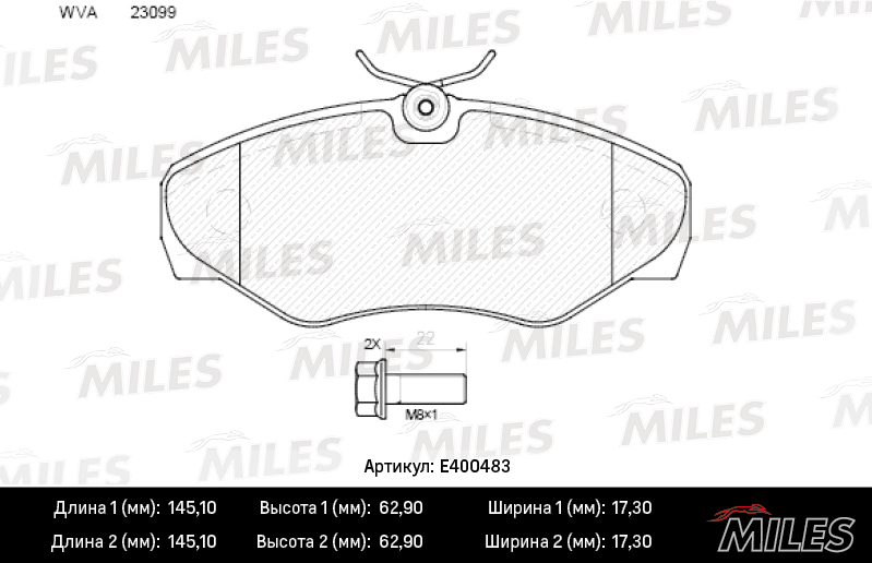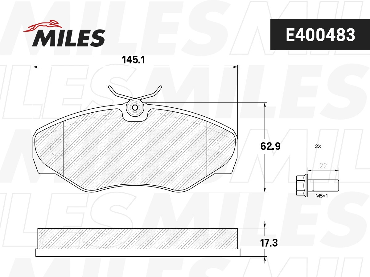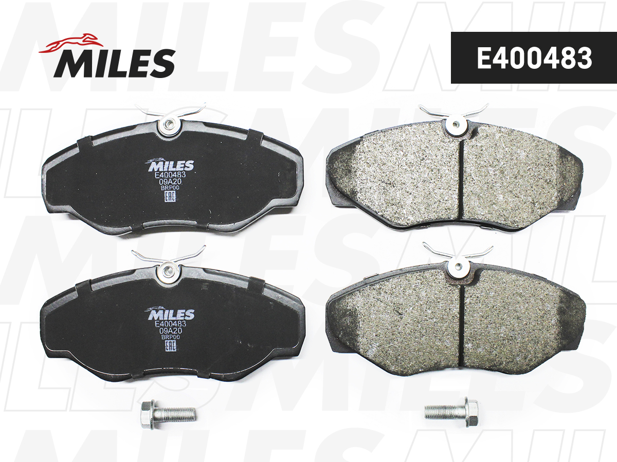 E400483 MILES Колодки тормозные передние (без датчика + болты) (Смесь Low-Metallic) OPEL VIVAR