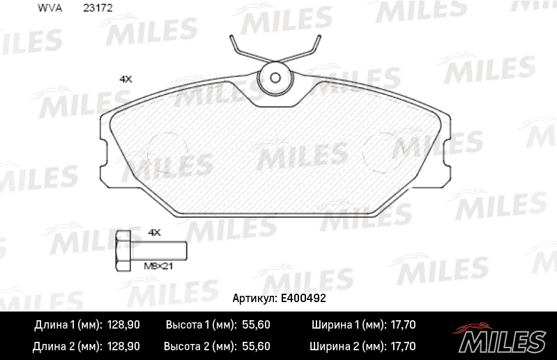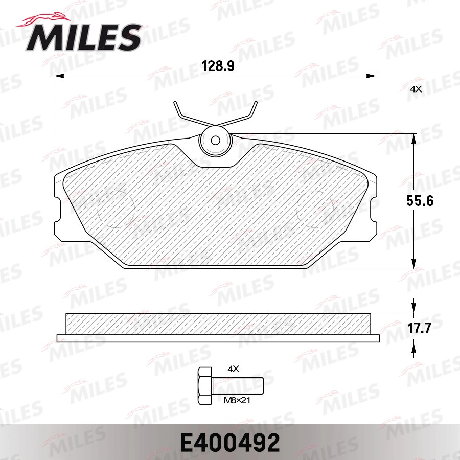 E400492 MILES Колодки тормозные передние (без датчика + болты) (Смесь Low-Metallic) RENAULT LA