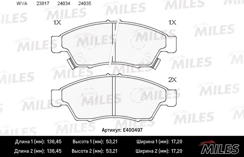 E400497 MILES Колодки тормозные передние (без датчика) (Смесь Low-Metallic) SUZUKI LIANA 02 (T