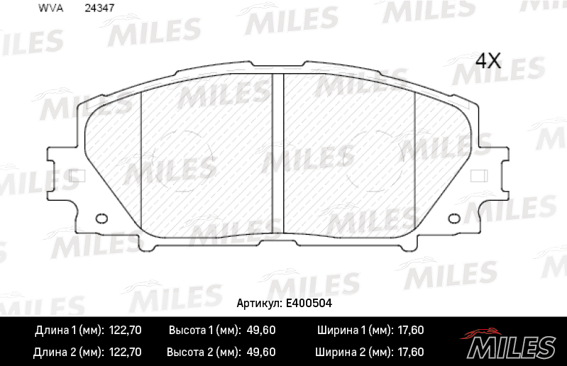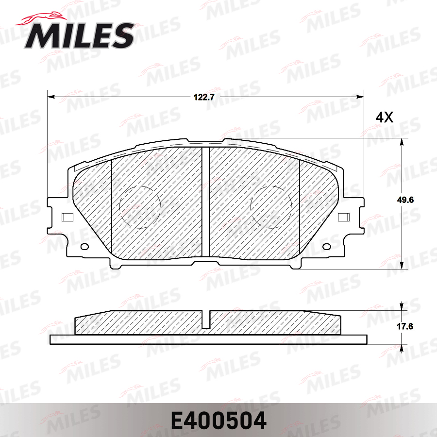 E400504 MILES Колодки тормозные передние (без датчика) без ABS (Смесь Low-Metallic) TOYOTA YAR