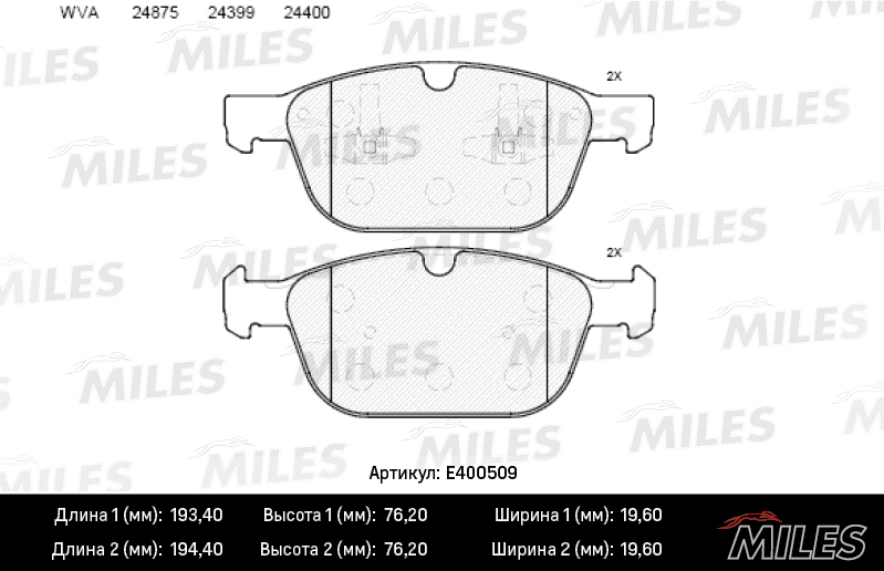 E400509 MILES Колодки тормозные передние (без датчика) (Смесь Low-Metallic) VOLVO XC 60 08- (T