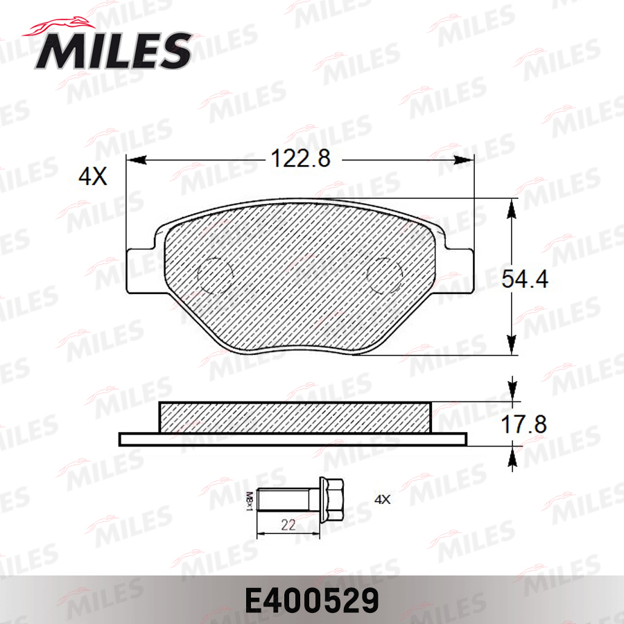 E400529 MILES Колодки тормозные передние (Смесь Low-Metallic) RENAULT MEGANE II 03 (TRW GDB157