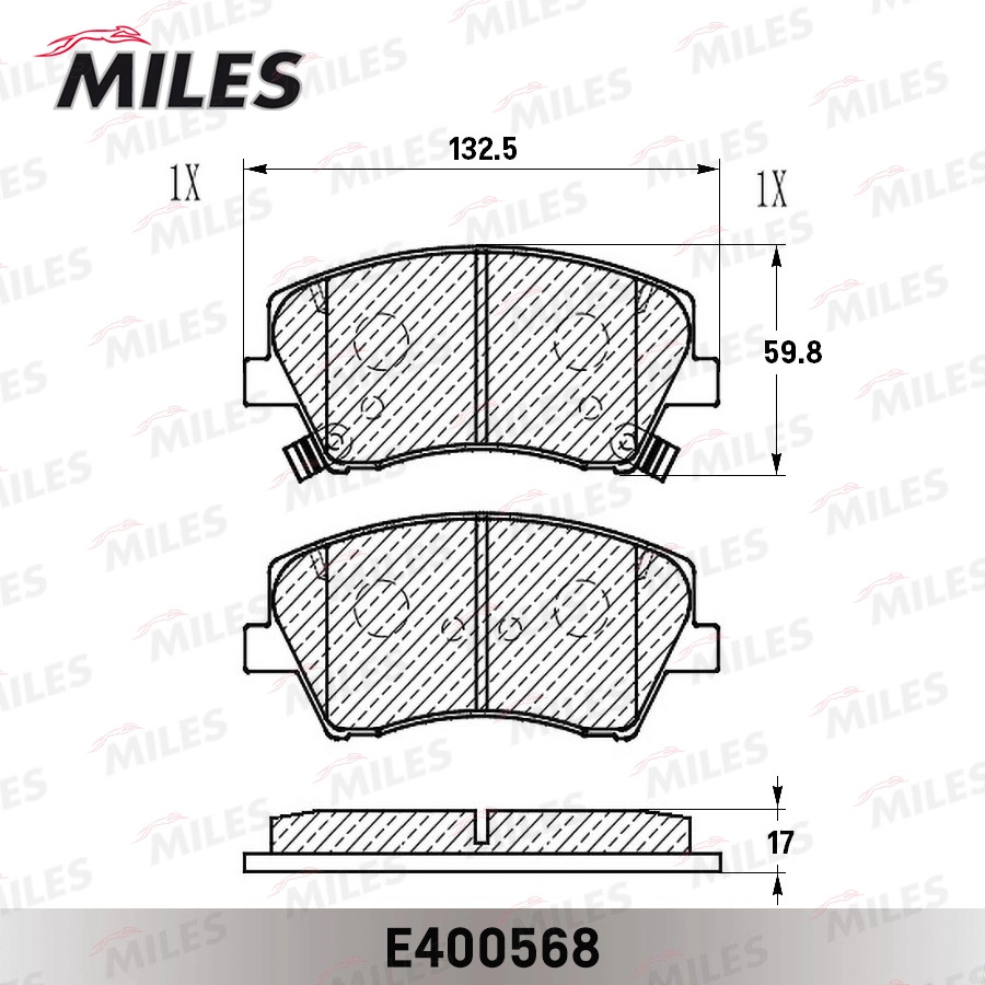 E400568 MILES Колодки тормозные передние (Смесь Low-Metallic) HYUNDAI ELANTRA 17- (TRW GDB2203