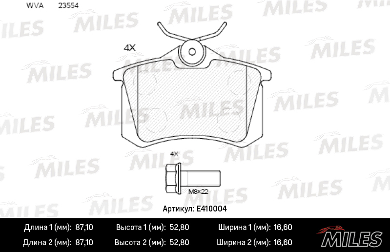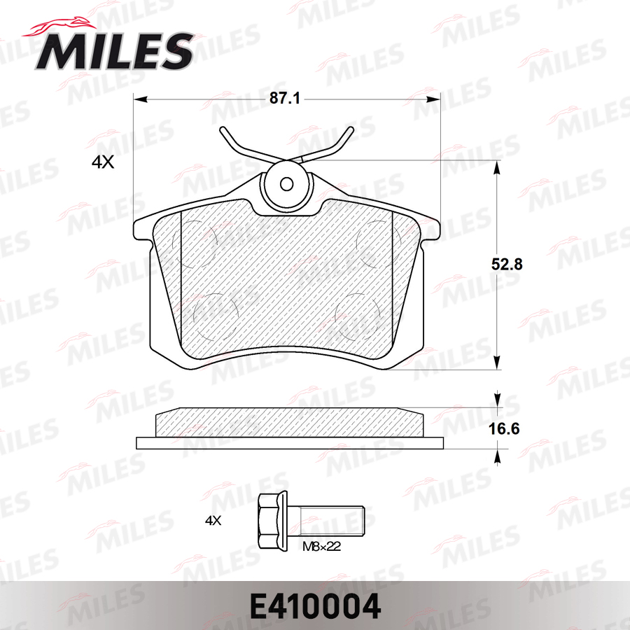 E410004 MILES Колодки тормозные задние (Смесь Low-Metallic) AUDI 96-/CITROEN 99-/RENAULT 98-/P