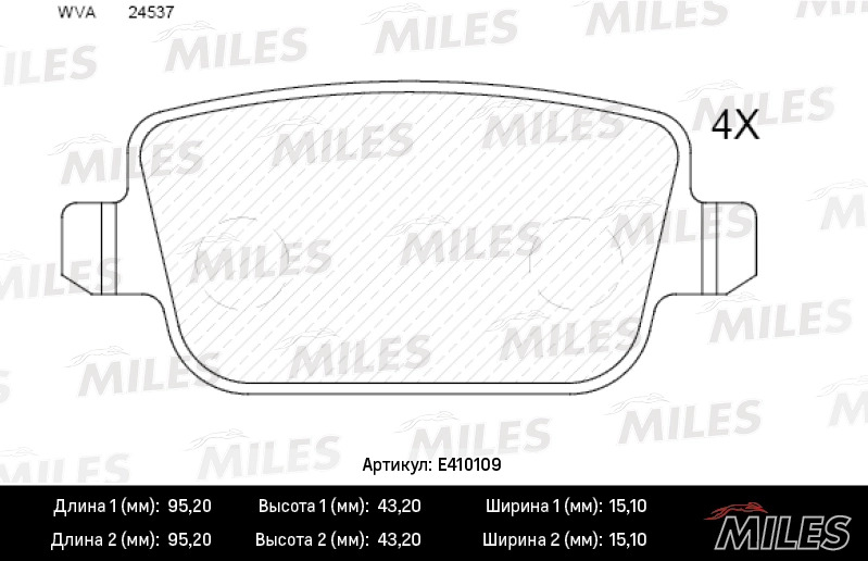 E410109 MILES Колодки тормозные задние (без датчика + болты) (Смесь Low-Metallic) (FORD GALAXY