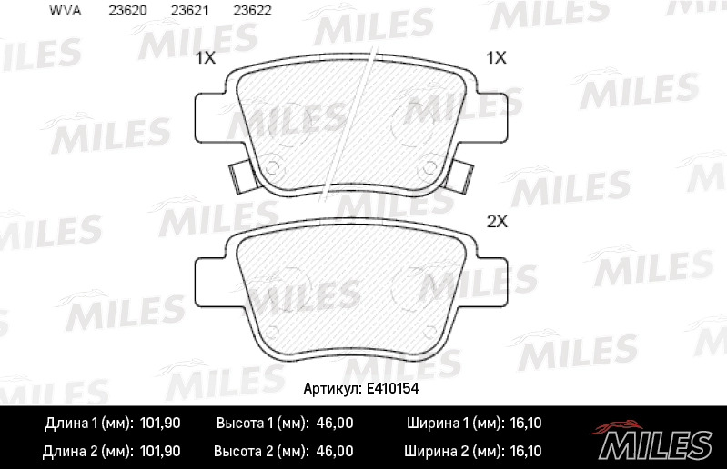 E410154 MILES Колодки тормозные задние (без датчика) (Смесь Low-Metallic) TOYOTA AVENSIS 03/CO