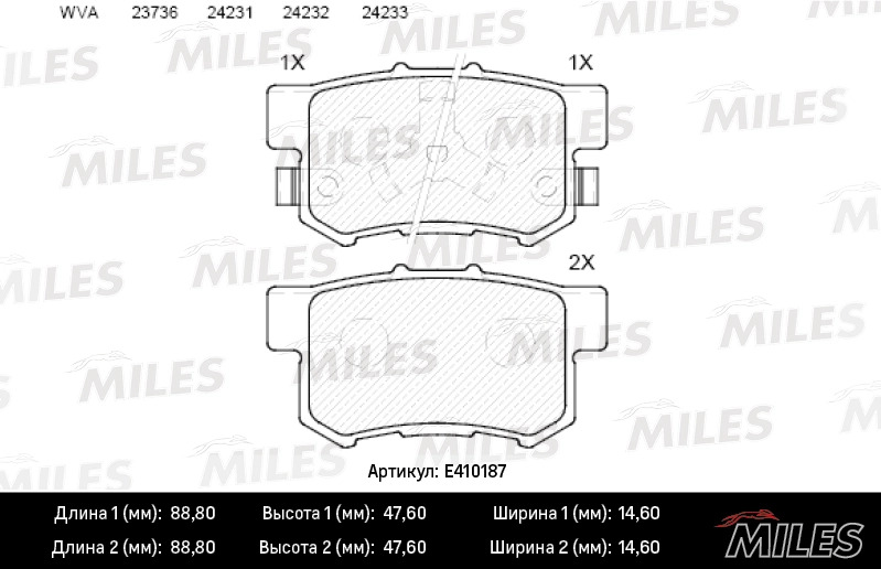 E410187 MILES Колодки тормозные задние (без датчика) (Смесь Low-Metallic) HONDA ACCORD 2.0-2.4