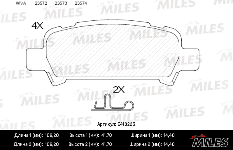 E410225 MILES Колодки тормозные задние (без датчика) (Смесь Low-Metallic) (SUBARU FORESTER 97-