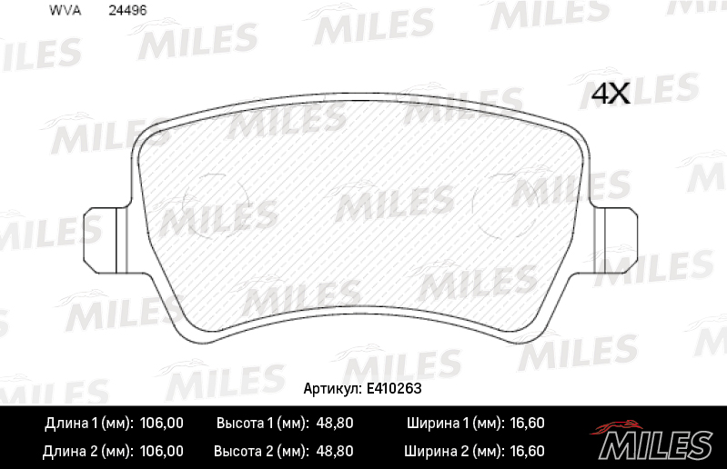 E410263 MILES Колодки тормозные задние (без датчика + болты) (Смесь Low-Metallic) (FORD GALAXY