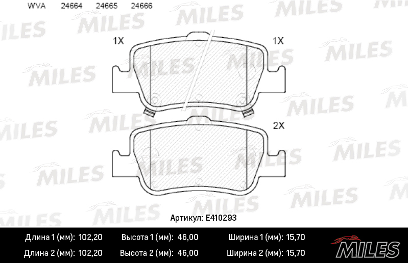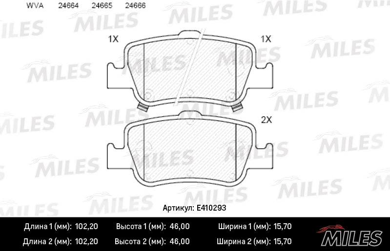 E410293 MILES Колодки тормозные задние (без датчика) (Смесь Low-Metallic) (TOYOTA AURIS 1.33-2
